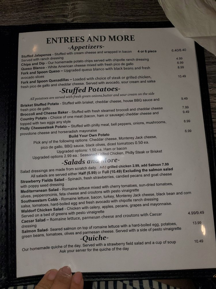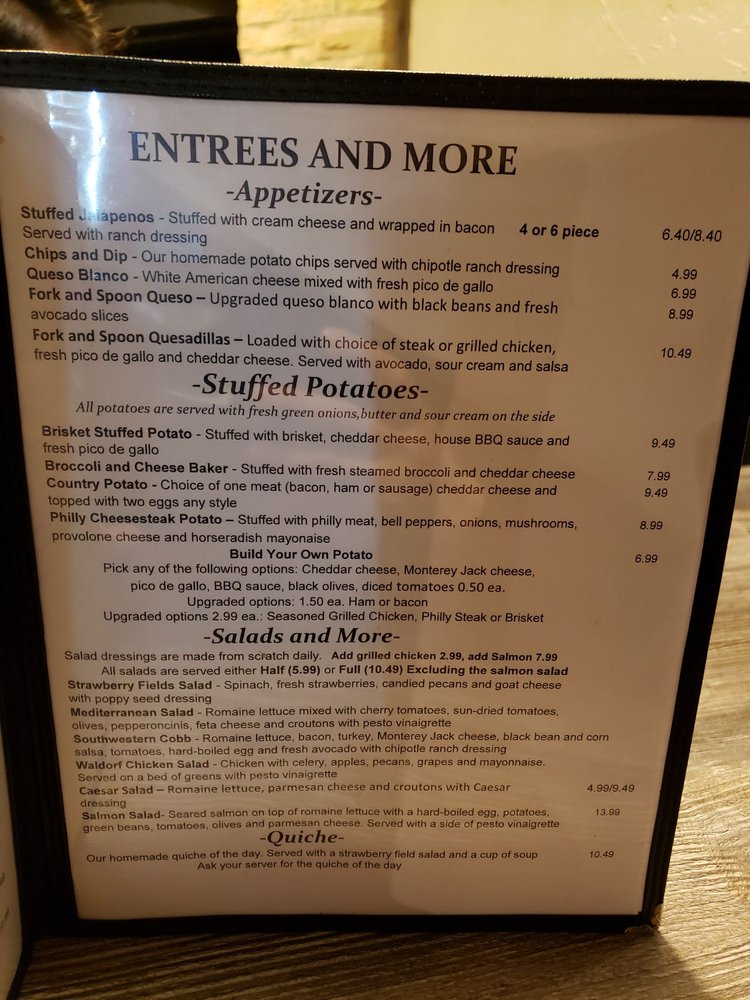 Fork and Spoon, a New American breakfast & brunch spot in New Braunfels, TX, offers a wide range of options for all types of diners. With vegan and vegetarian options, as well as beer & wine, it caters to various dietary preferences. The restaurant is known for its casual atmosphere, welcoming groups, kids, and even dogs. The menu features dishes suitable for breakfast, brunch, and lunch, with happy hour specials available. Fork and Spoon also provides convenient amenities such as takeout, delivery, and online reservations. With free Wi-Fi, TV, and outdoor seating options, it is a versatile dining destination. The location boasts wheelchair accessibility and ample parking. Overall, Fork and Spoon promises a satisfying dining experience for those looking for a relaxed and enjoyable meal.