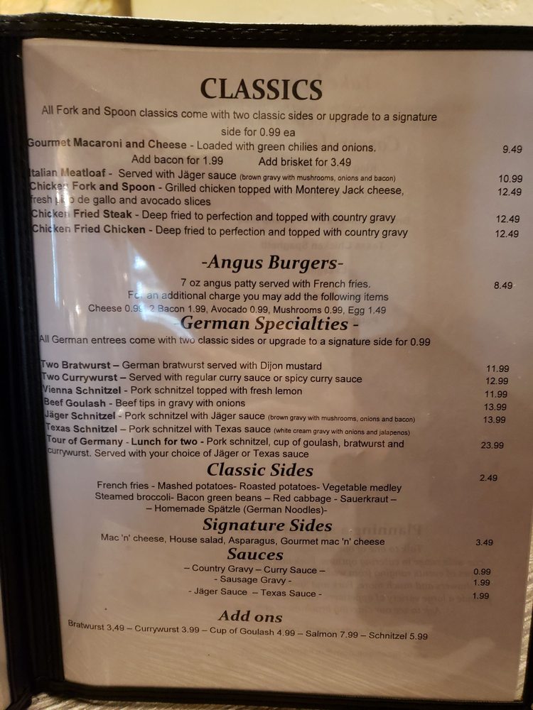Served with Jäger sauce (brown gravy with mushrooms, onions and bacon)
